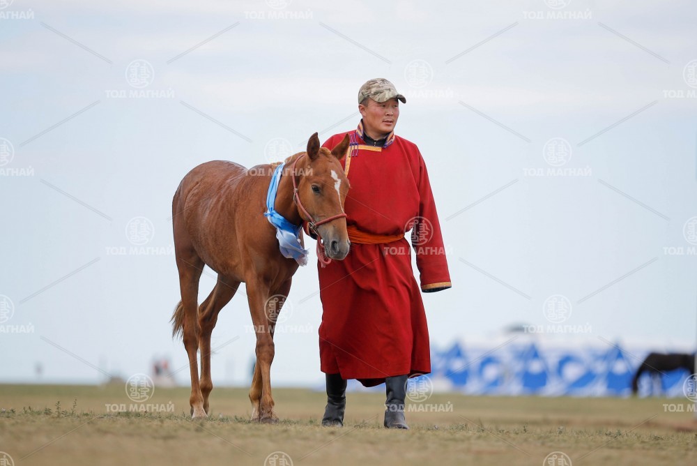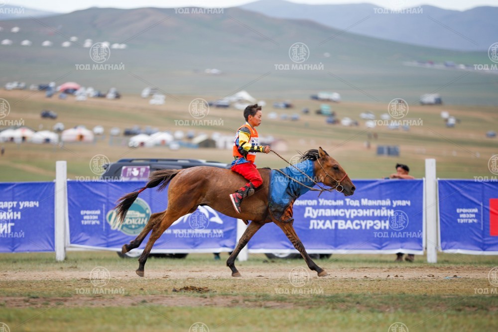 3.Өмнөговь аймгийн Булган сумын уугуул Тод манлай уяач Намдагийн Хүрлээгийн хүрэн халзан. Уяа сойлгыг Б.Ганбаяр. Уралдаанч 15 настай Батхүүгийн Бадар-Ууган.