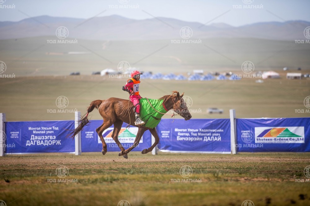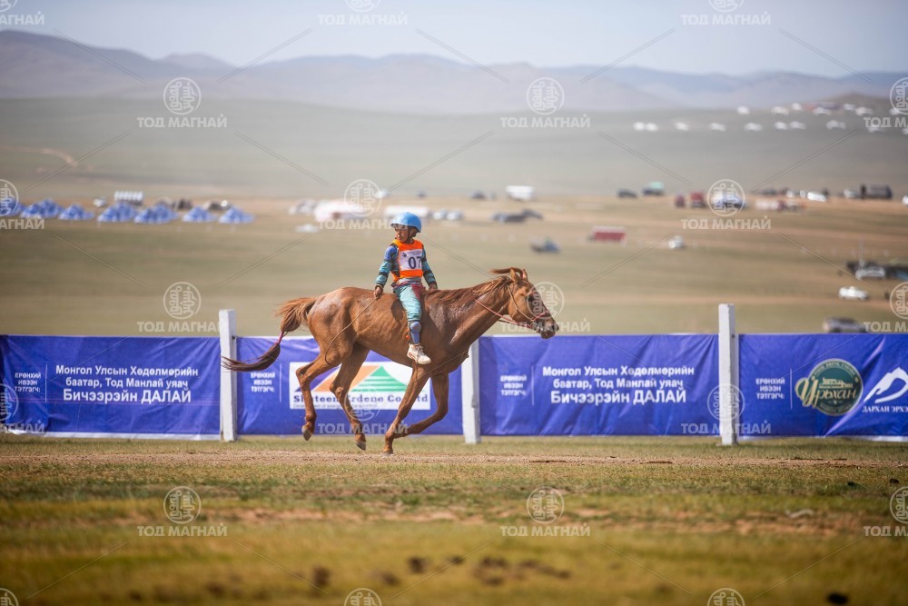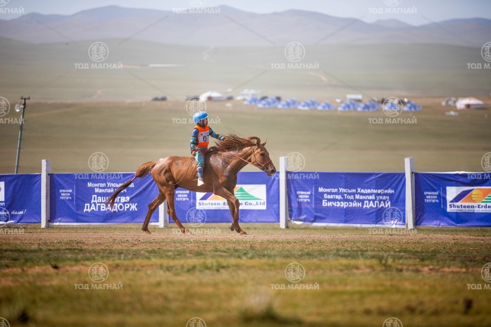 8. Сэлэнгэ аймгийн Баянгол сумын уугуул МУ-ын Алдарт уяач Т.Төрмөнхийн хонгор зээрд. Уяа сойлгыг аймгийн Алдарт уяач Б.Бямбадорж. Уралдаанч 11 настай Д.Дагва-Очир.
